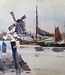 Aquarel vanaf de oever van Dordrecht bij het veer naar Zwijndrecht. Rechts de trasmolen Welgelegen. Lees meer..